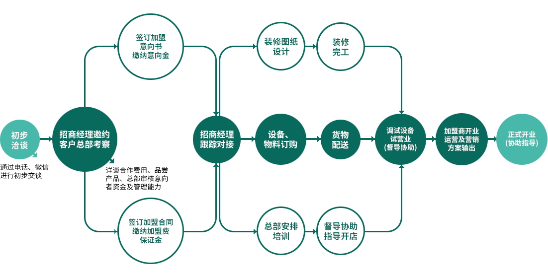 公司總部下設店鋪督導,一年365天,天天巡回在各地代理區(qū)域,協(xié)助各地投資者進行渠道擴充、店鋪管理,提高經(jīng)營水平,提升業(yè)績