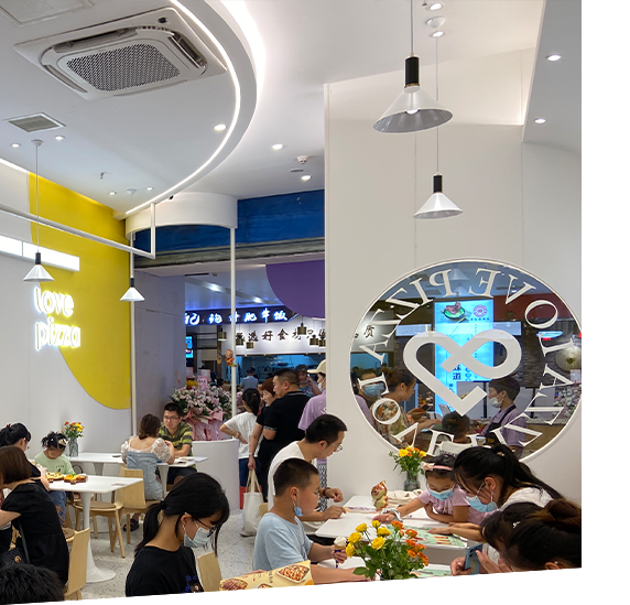 愛八寸品牌從十幾平米到上百平米均可開店,規(guī)劃科學,裝修標準。總部為門店配送半成品的披薩餅胚.